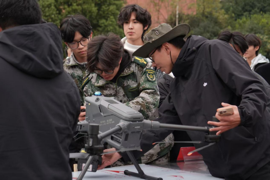 活动以无人机与低空经济融合为背景,设置专业讲解、真机展示、飞行表演及校企座谈四大环节。学院教师介绍无人机教学资源与实训安排,大疆技术人员展示主流机型、讲解核心技术,并开展飞行表演展现精准操控能力。